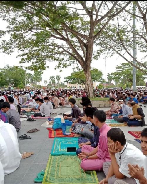 Shalat Idul Fitri 1443 H Di Lapangan Siak Bermadah, Pemkab Siak Dan Masyarakat Kota Siak