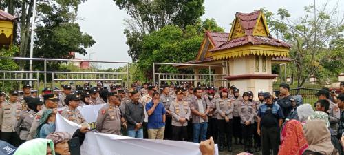 Ketua DPRD Kabupaten Pelalawan, Syafrizal, menerima para pengunjuk rasa di gedung DPRD Pelalawan